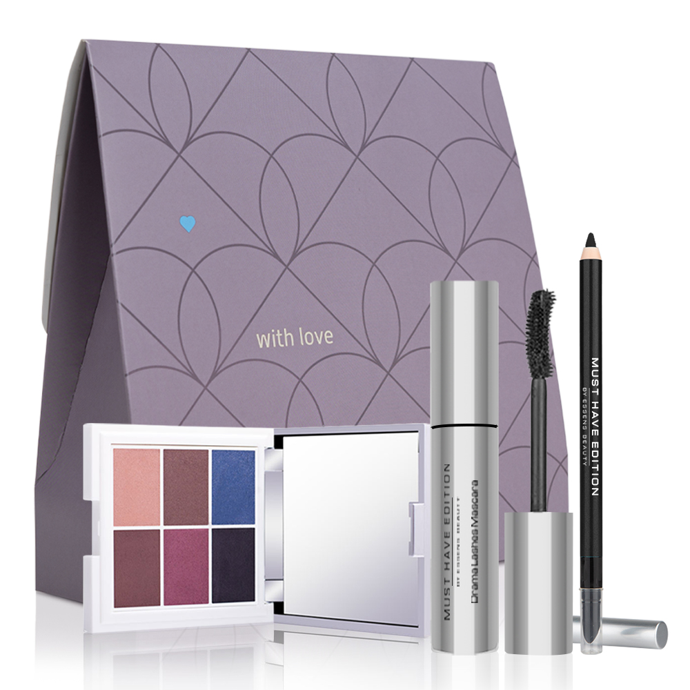A timeless eye essentials set featuring a black mascara and a black eyeliner for defined, intense looks. The set is completed with an eyeshadow palette, perfect for creating everything from soft daytime makeup to a bold Valentine’s night look. Ready to be packed in a special Valentine’s edition bag.
